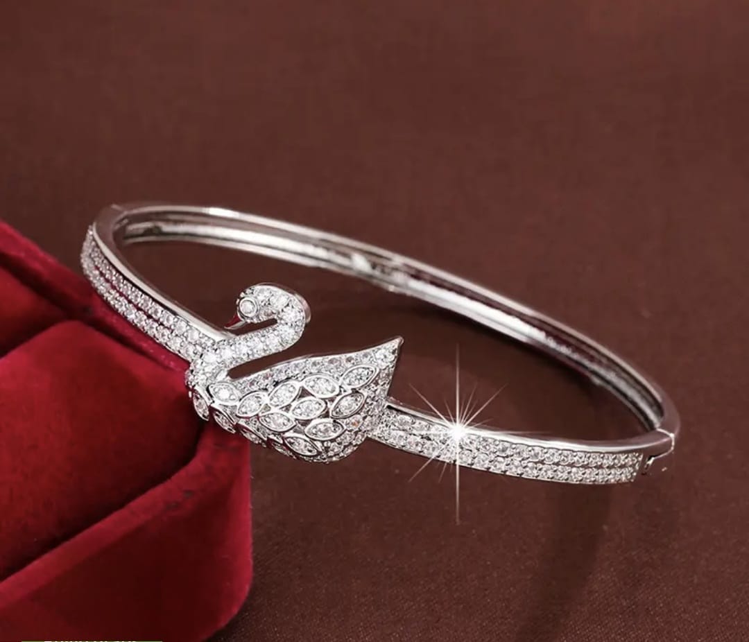 Atributo: contorno de cisne + zircones de alta claridad (estilo Swarovski).