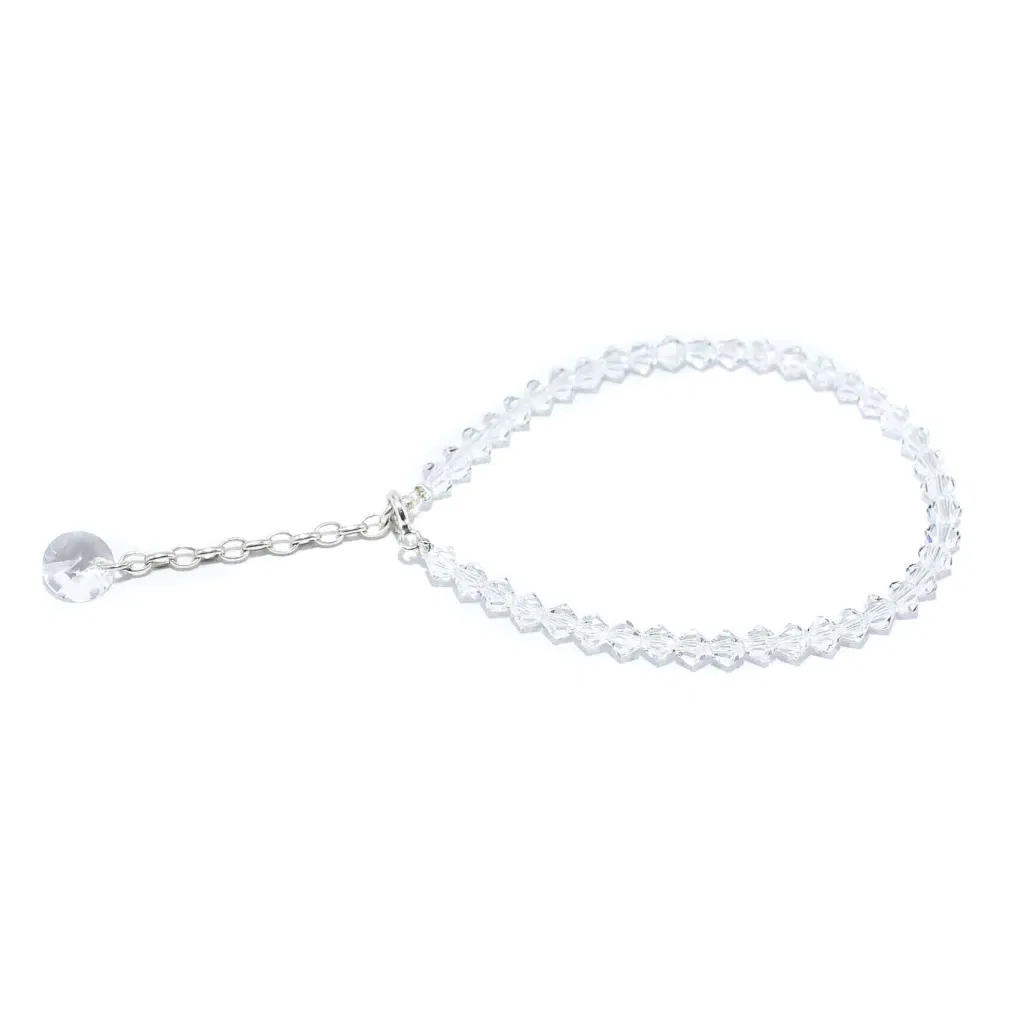 Delicada, luminosa y con presencia: esta pulsera está hecha con cristales Swarovski auténticos de Austria® de 4 mm y detalles en Plata 925, logrando una pieza versátil que realza cualquier look.