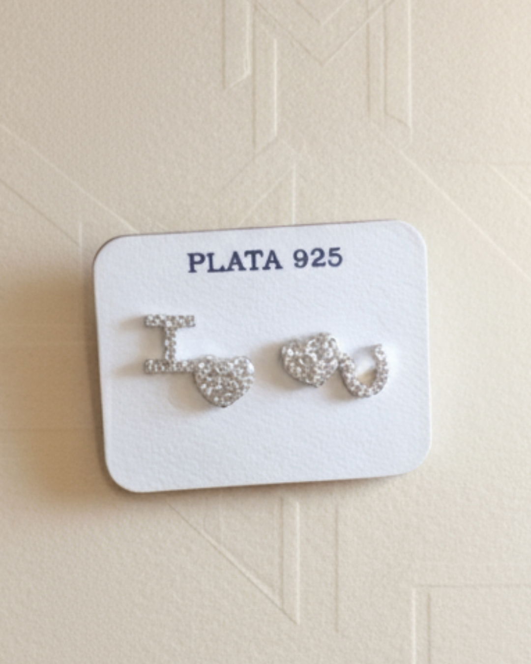 Los aros a juego forman la frase “I ❤️ U”, un diseño moderno y delicado que transforma cada look en una declaración de amor.