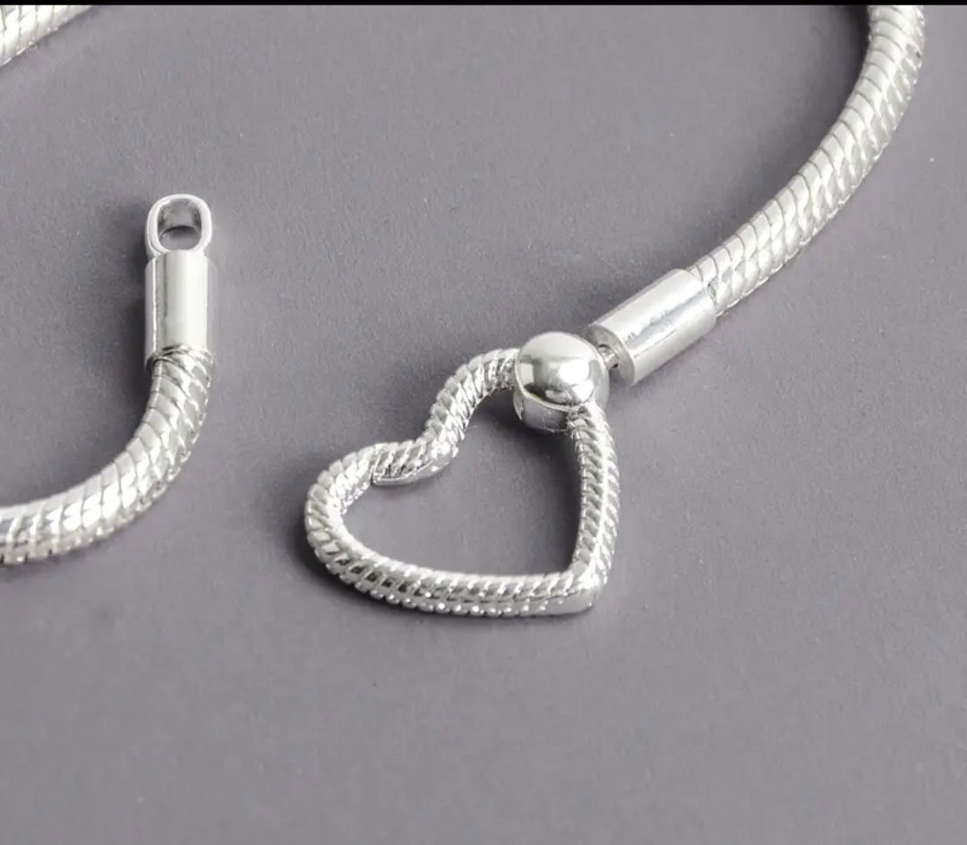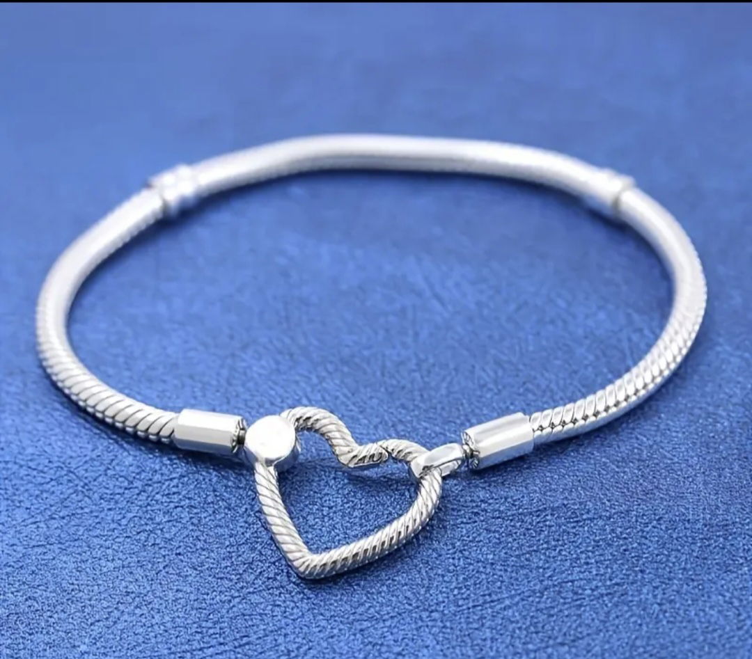 Diseño inspirado en el icónico estilo Pandora, esta pulsera de plata 925 representa una declaración de amor eterno y elegancia atemporal.