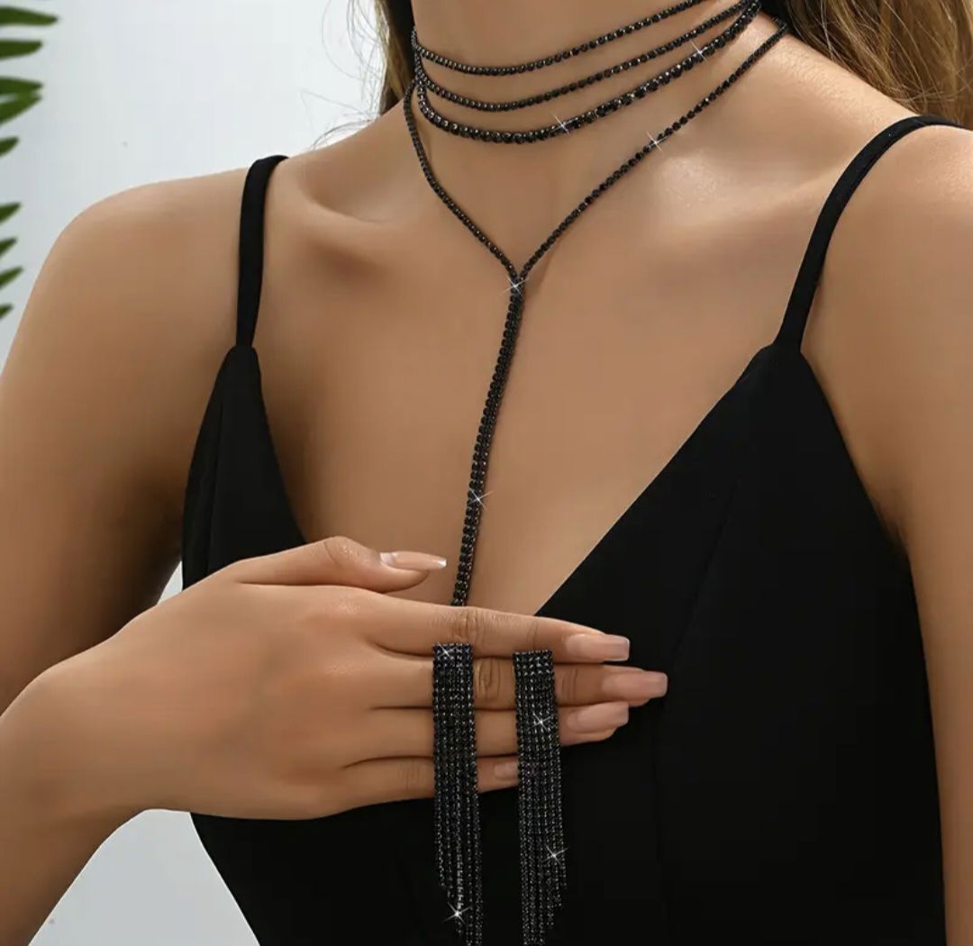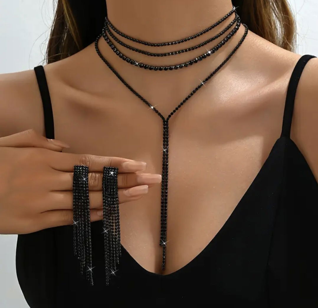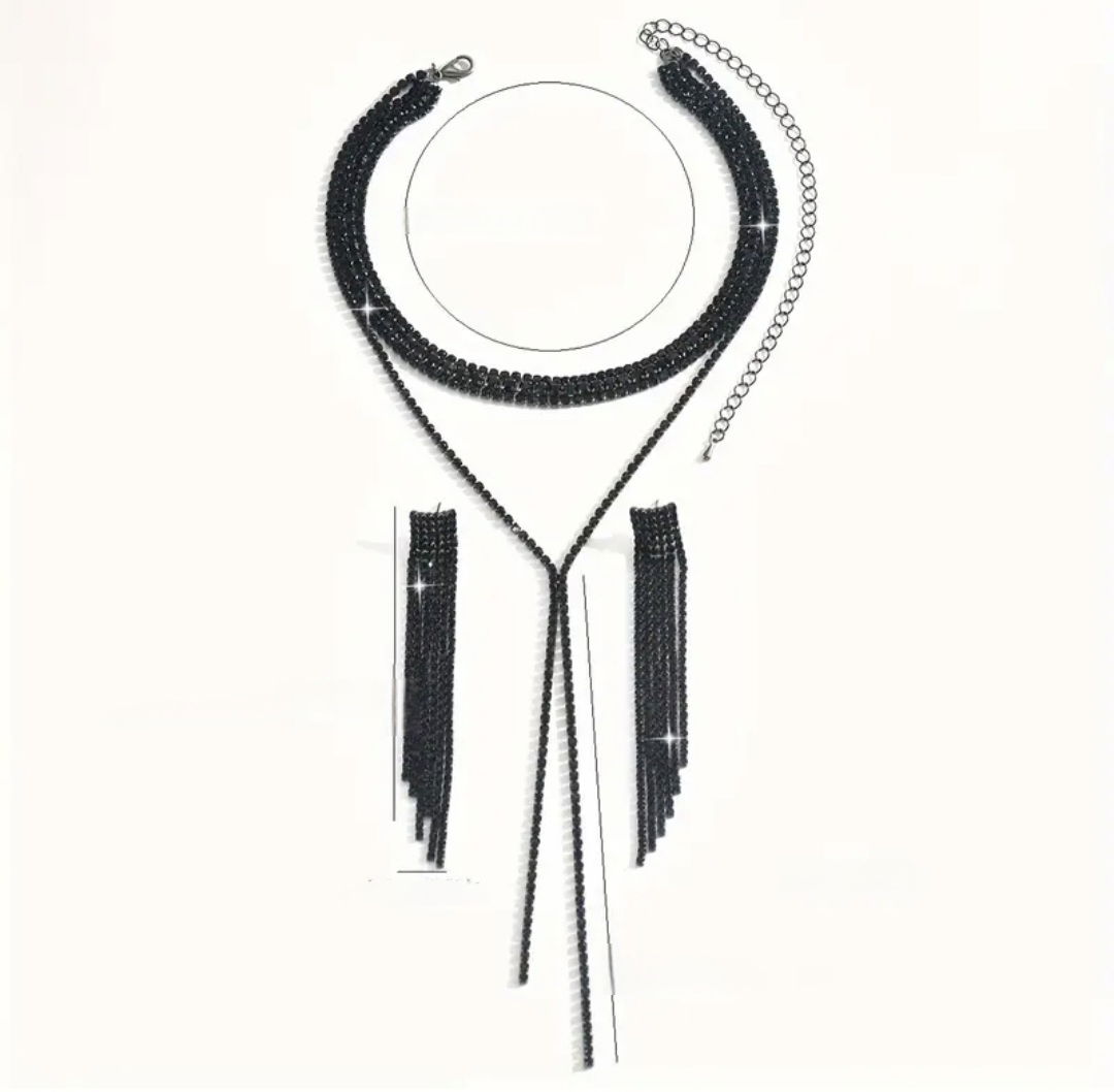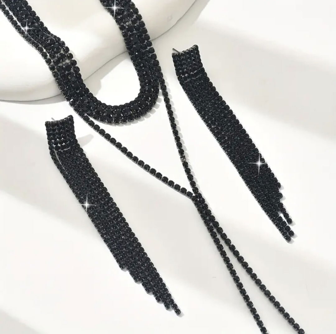 Acompañada por aros a juego, este conjunto equilibra sofisticación y tendencia, ideal para ocasiones especiales o para darle un toque de distinción a tu look diario.