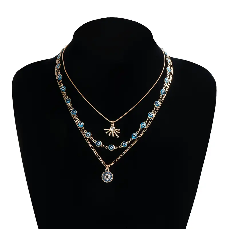 Collar Ojo Turco – Set Triple Baño Oro 18K con Zircones