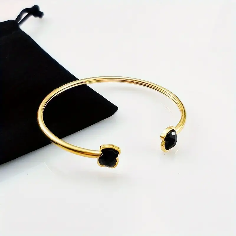 La Pulsera Teddy está elaborada en acero inoxidable hipoalergénico, bañada en oro 18K para un acabado radiante y duradero. Su diseño destaca por el dije de oso en jade, símbolo de equilibrio, serenidad y prosperidad.