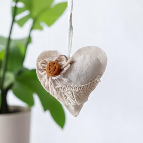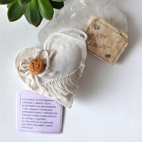 Corazón de flores de lavanda para perfumar cajones, placards, colgar en el auto o simplemente darle uso decorativo.