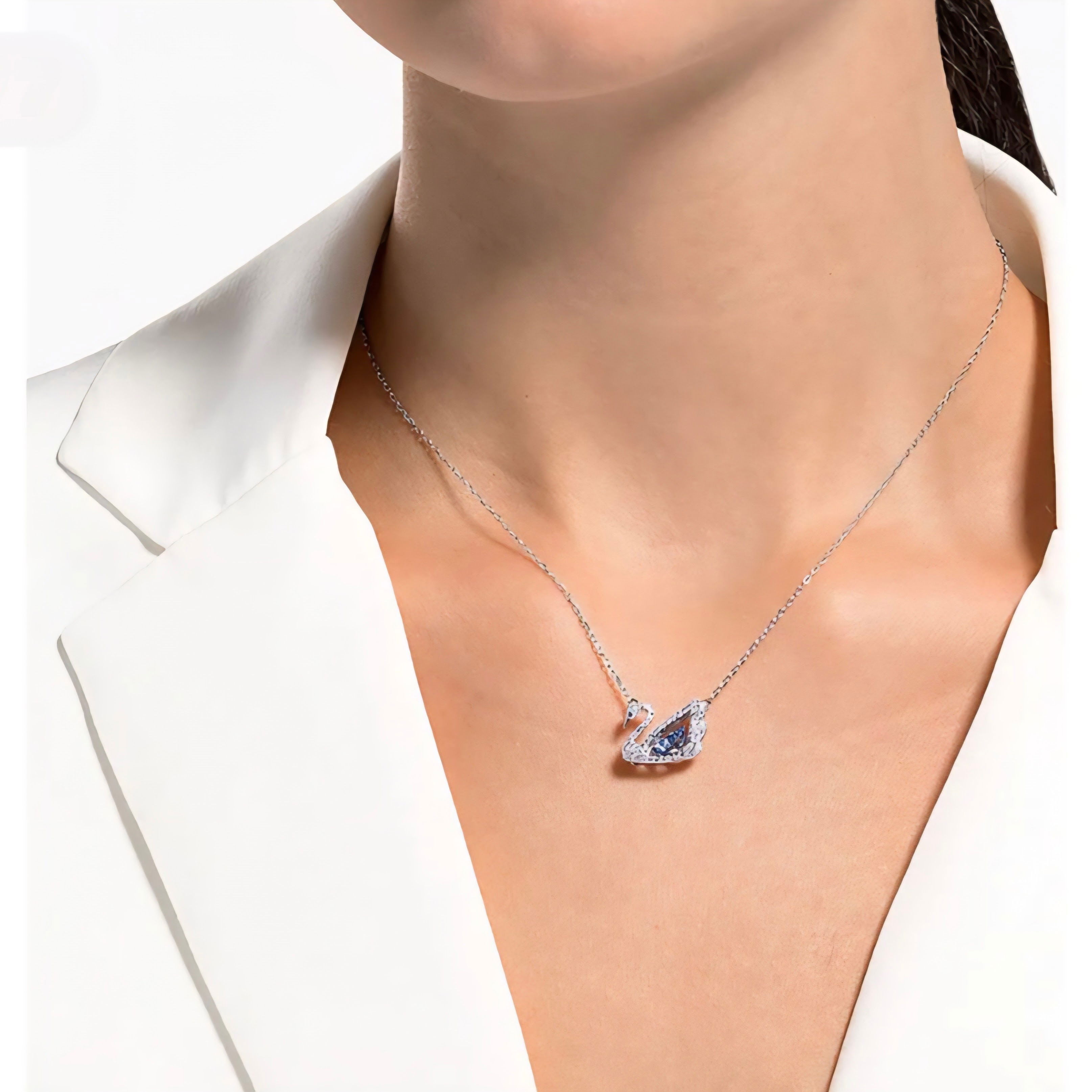 Collar con colgante de cisne de moissanita de 1 quilate para mujeres - Plata 925 hipoalergénica, 3,8 g, diseño elegante de cisne, Cristal Swaroski