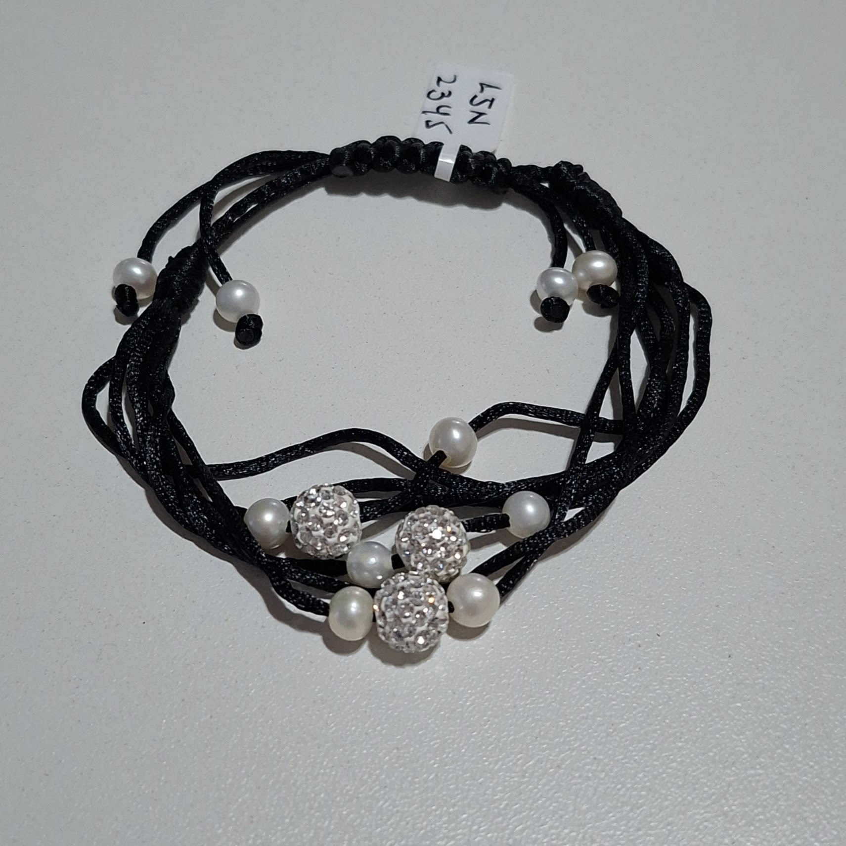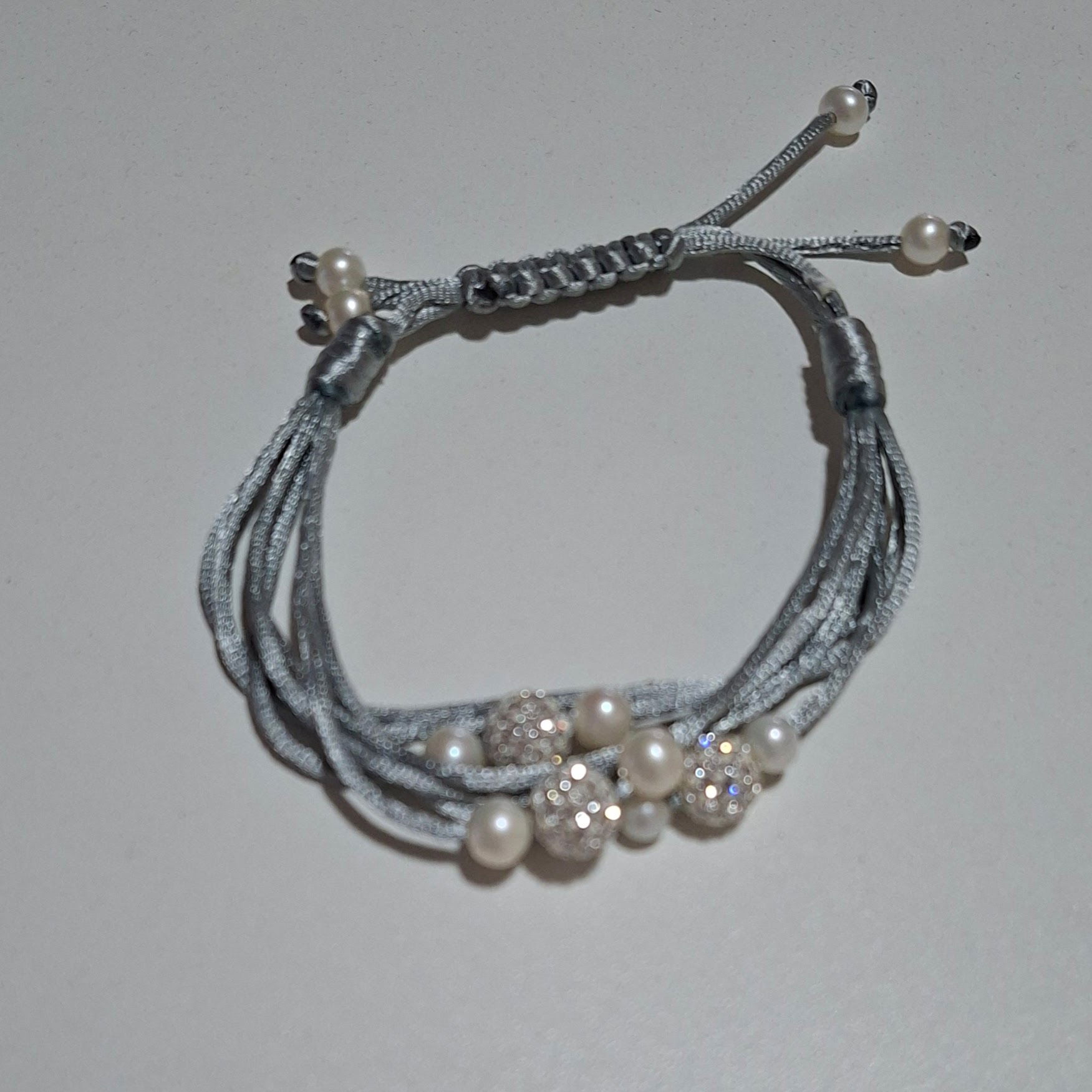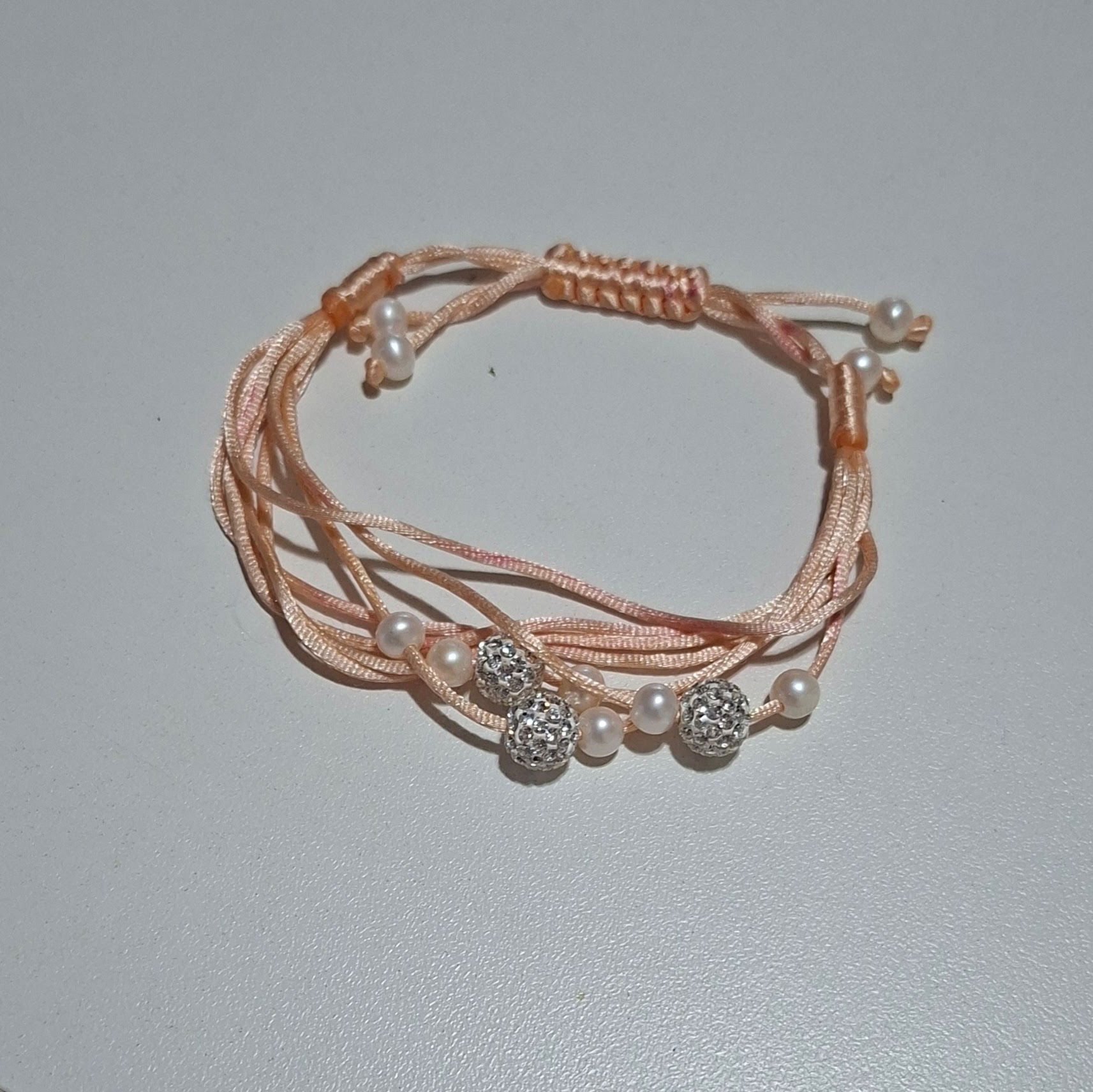 Pulsera multivueltas con Hilo de Seda, Dijes con Microcristales y Perla de Rio
