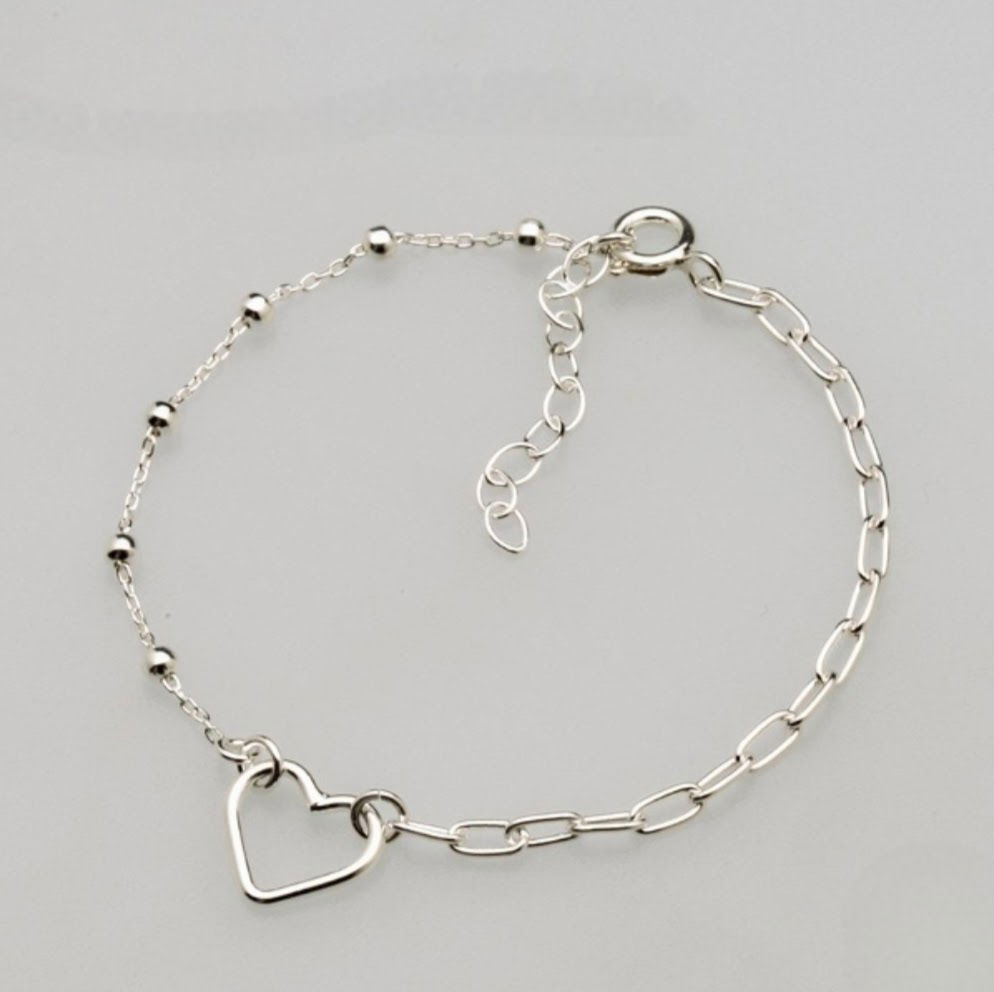 Pulsera Plata Lisa Combinada con Centro Corazon.