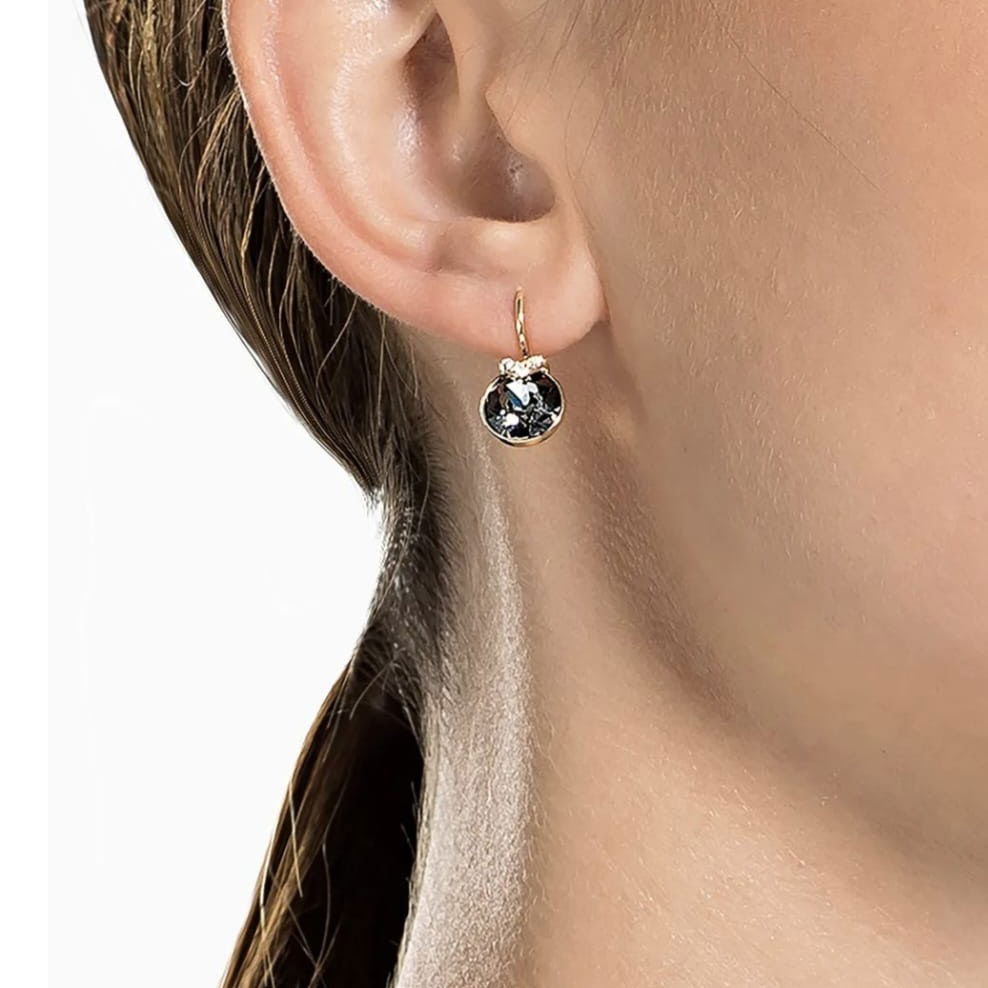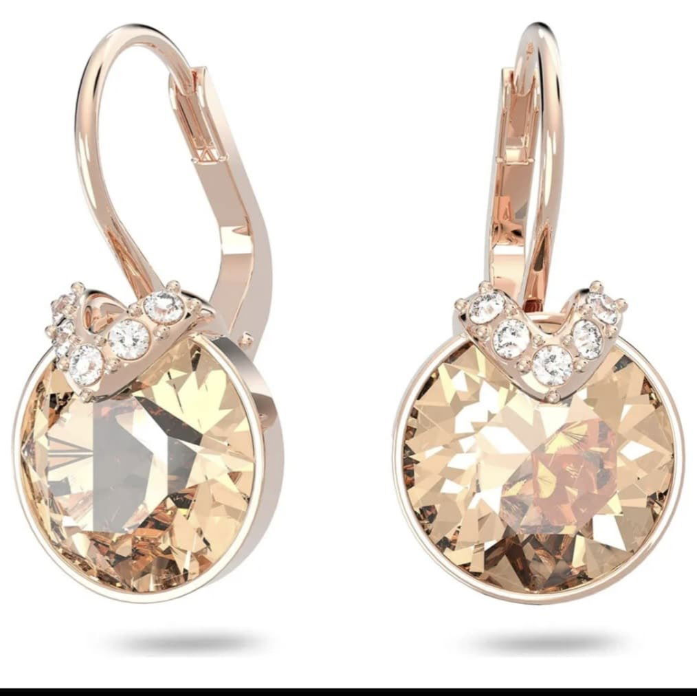 Aros Besha diseñados en Plata 925 con baño oro rose, acompañados por cristales Swarovski en tonos ámbar y gris, que generan un contraste elegante y luminoso. Son piezas modernas, versátiles y con un brillo distintivo que realza cualquier look, desde el más simple hasta el más sofisticado.